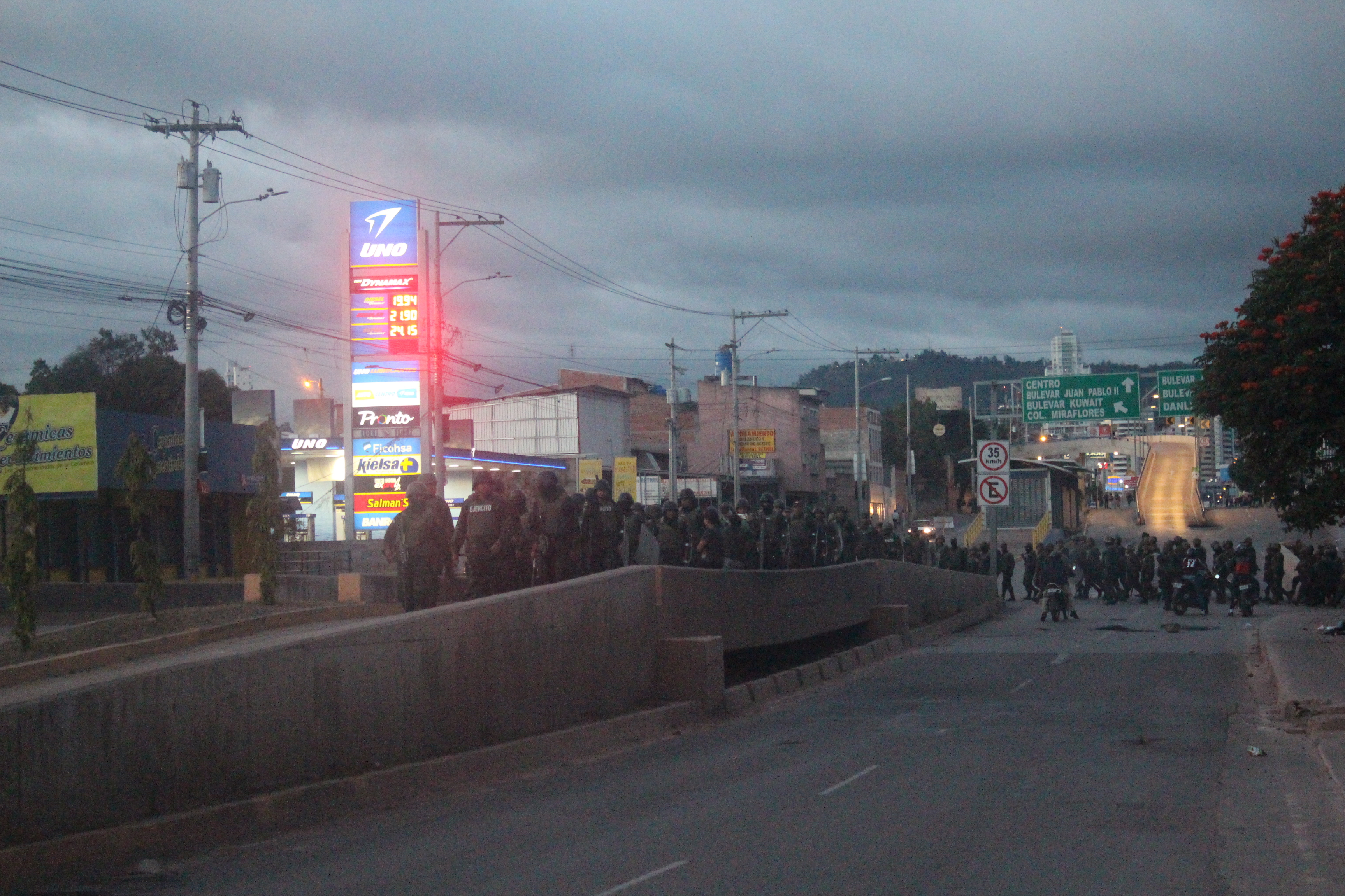 Por la tarde, en el bulevar Centroamérica, a la altura de la colonia Kennedy se dan los primeros disturbios, policías y militares arremeten contra establecimientos de comida por albergar protestantes y secuestran el ambiente con humo de bombas lacrimógenas (ahora lo hacen por deporte).