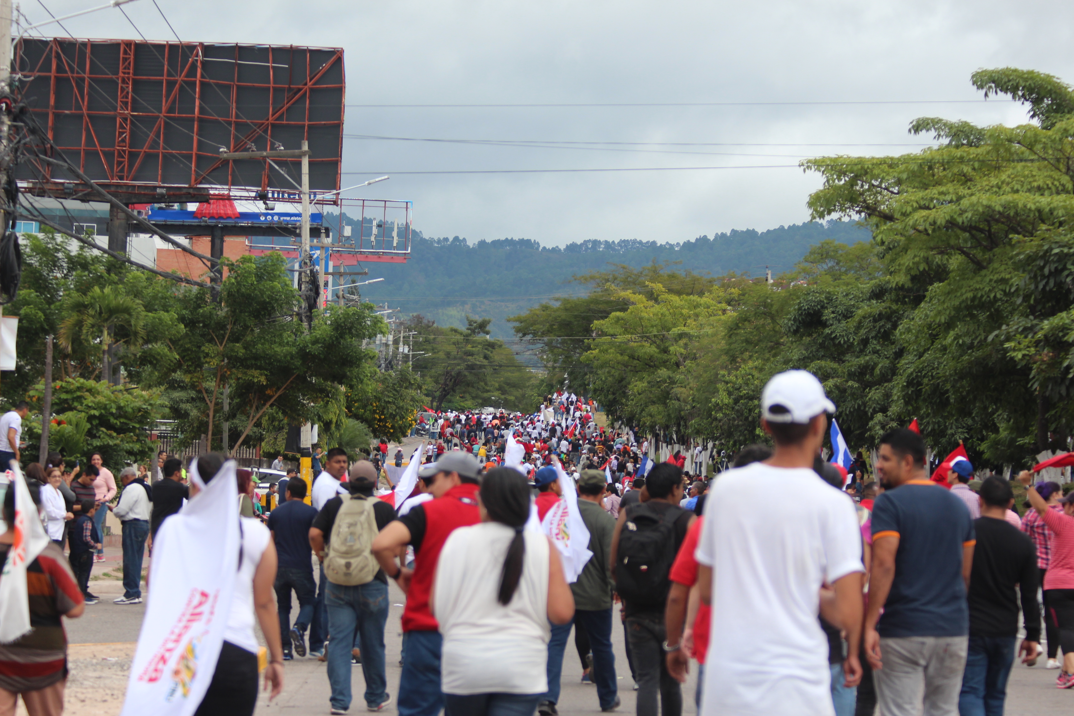 Son las once y media y hay alrededor de unas 10 cuadras del bulevar Suyapa, repletas de gente por los dos lados y sigue llegando más según pasa el tiempo. Los organismos internacionales por fin se hacen presentes, sin embargo hay rostros extraños (levantan perfiles) tomando fotos de aquellos que gritan entusiasmados; ni el sol ni la fuerte presencia de los regimientos verde-olivo quitan los ánimos de los que van llegando en cantidades descomunales.