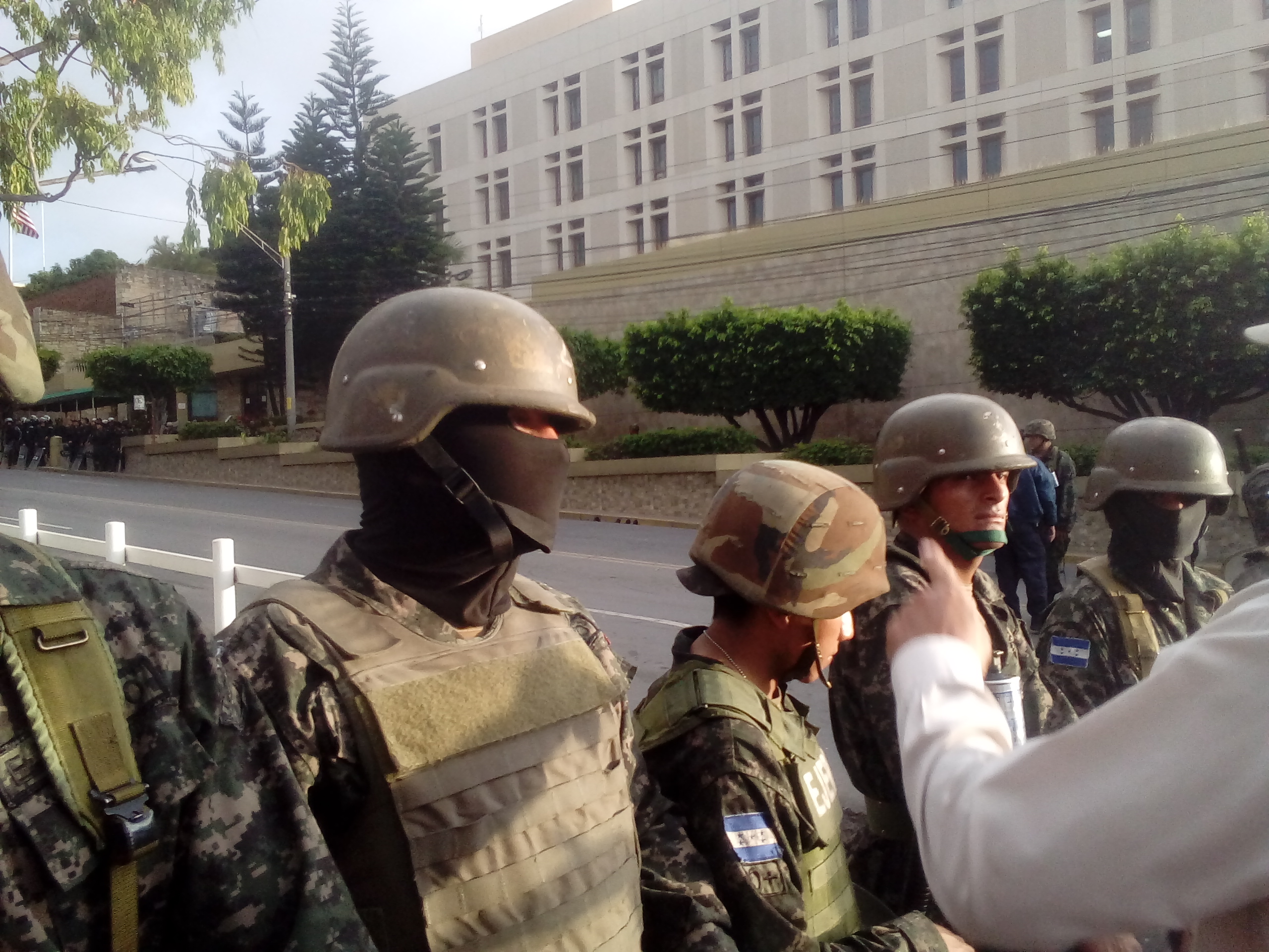 Honduras, Centro América. La embajada de Estados Unidos en Honduras se ha convertido en escenario de protestas de miles de hondureños, cada vez es más creciente el repudio ciudadano al rol de Estados Unidos en apoyo al fraude electoral en Honduras.